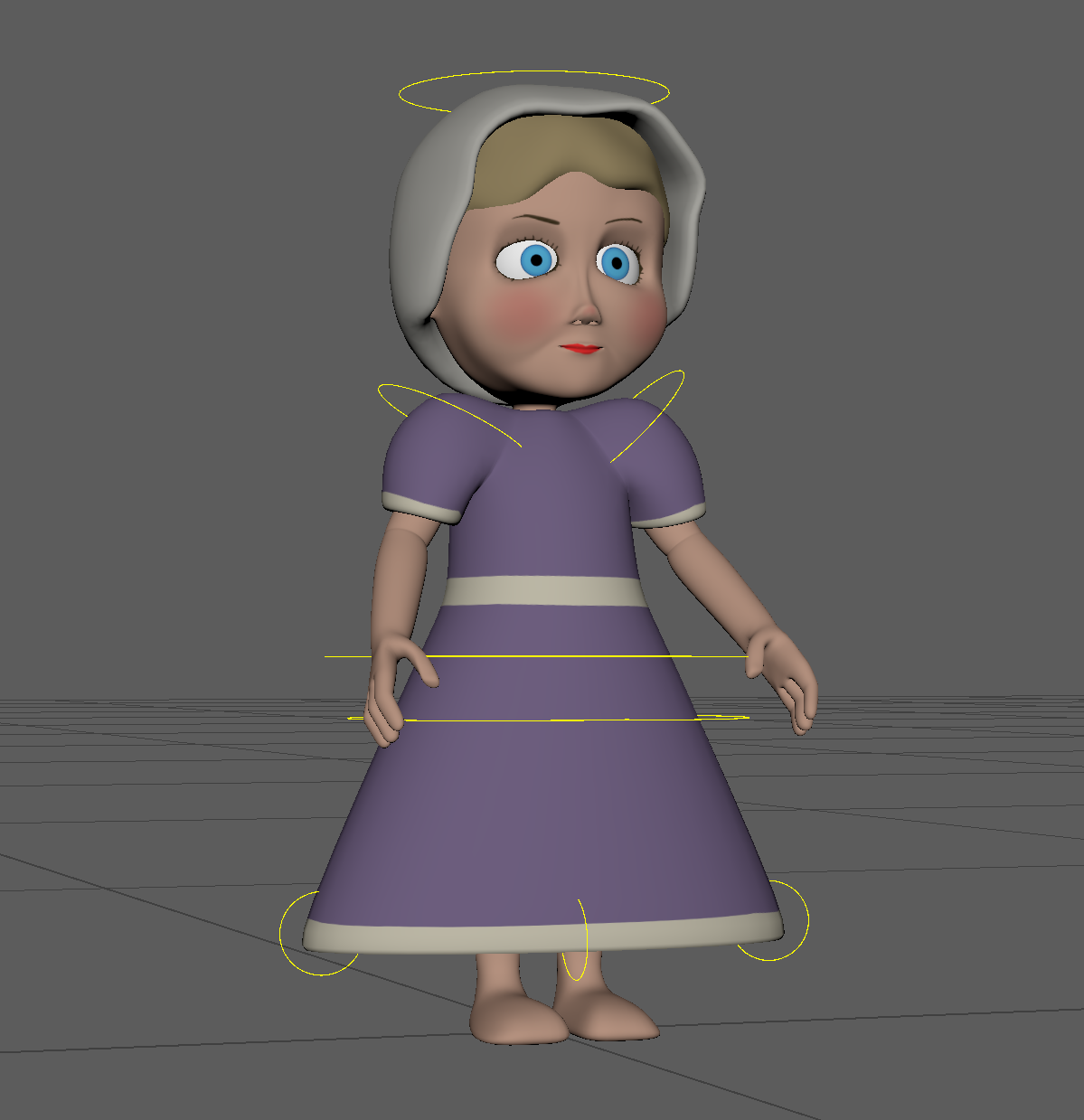 Another thing I worked on this week was the doll -- it is vital to the story and the shot I am planning on finishing for next week. I learned from my mistakes on the Rose rig and created unique bones/controllers for the doll's dress.
